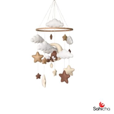Felt Cloud, Moon Star & Teddy Hanging Mobile – Handmade 100% New Zealand Wool