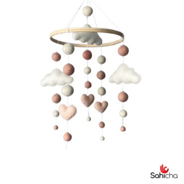 Felt Heart & Cloud Baby Hanging Mobile – Handmade 100% New Zealand Wool
