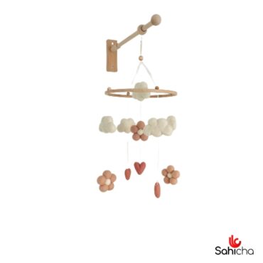 Felt Cloud & Floral Baby Hanging Mobile – Handmade 100% New Zealand Wool